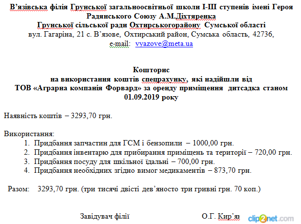 Кошторис та Фінансовий звіт про надходження та використання всіх отриманих коштів