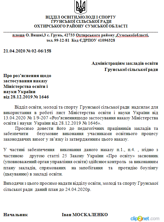 Лист від 21.04.2020 року №02-06/158
